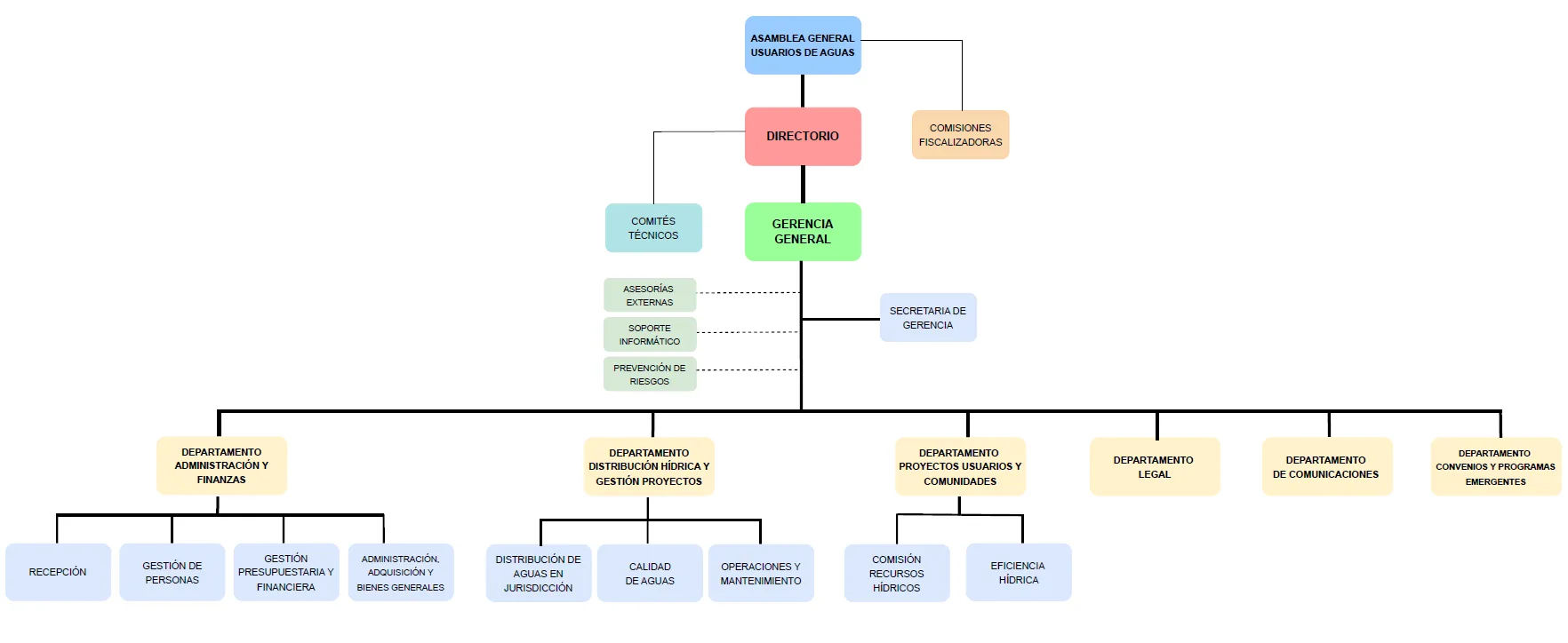 El 09 de agosto de 1995 se firman sus estatutos ante Notario Público y el 23 de octubre de ese mismo año se suscribe la rectificación de dicho documento. Posteriormente, el 8 de marzo de 1996 se inscribe en el Catastro Público de Organizaciones de la Dirección General de Aguas (DGA) y se declara organizada, a través de la Resolución Exenta de la DGA N° 650.